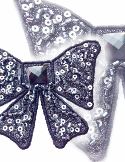 - Stickerei mit eingenähten Pailletten – in 4 verschiedenen Arten/Farben, sowie Wendepailletten.